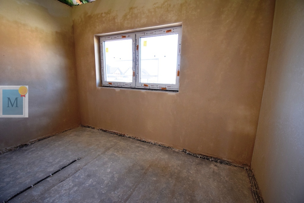 Okna plastikowe z roletami zewnętrznymi otwierane elektrycznie. Okno z wyjściem na taras odstawno-przesuwne, taras o pow. ok. 12m2. Wszelkie instalacje wykonane; elektryczna, kanalizacyjna, grzewcza.