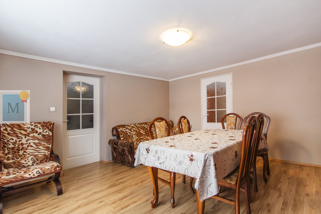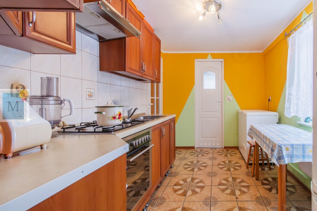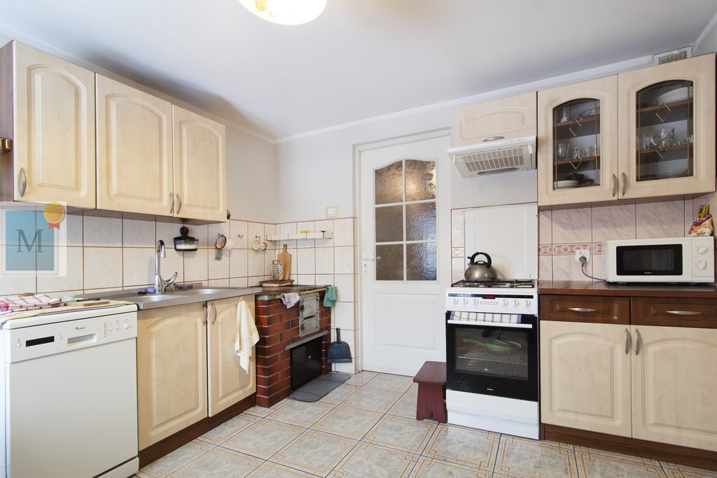 W sumie na parterze 3 pokoje, 2 kuchnie i 2 łazienki. Na poddaszu 2 pokoje i podstryszki.