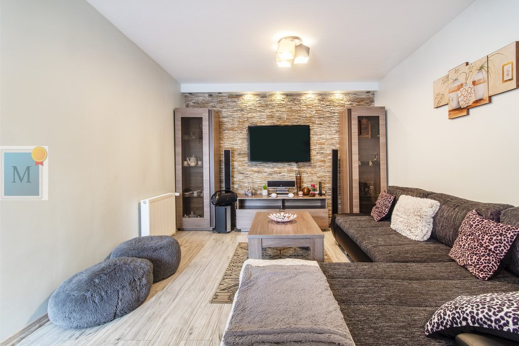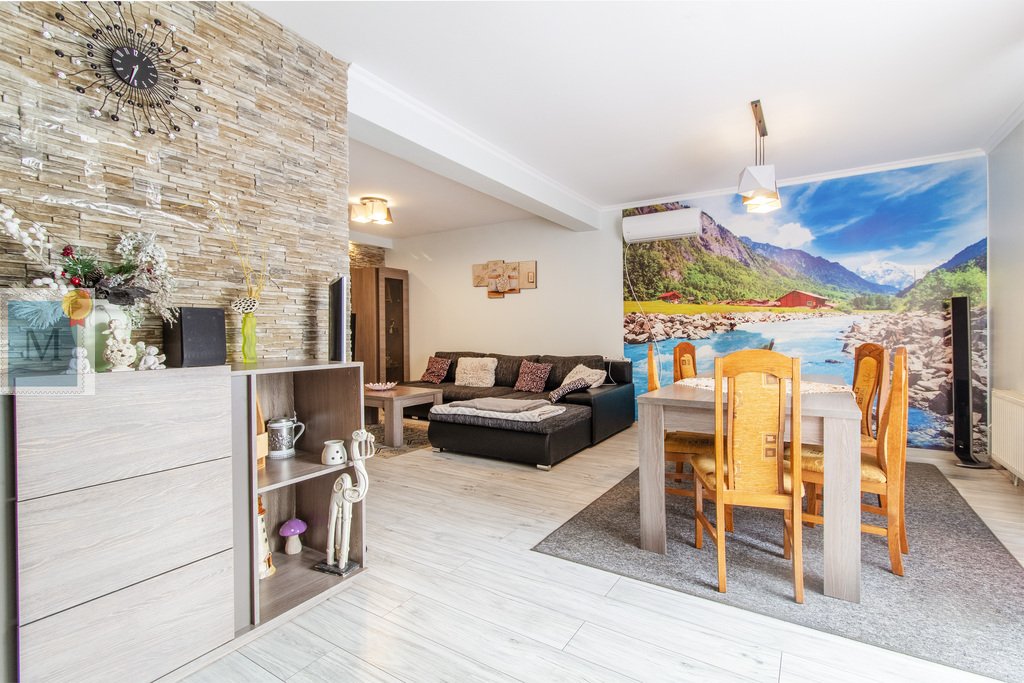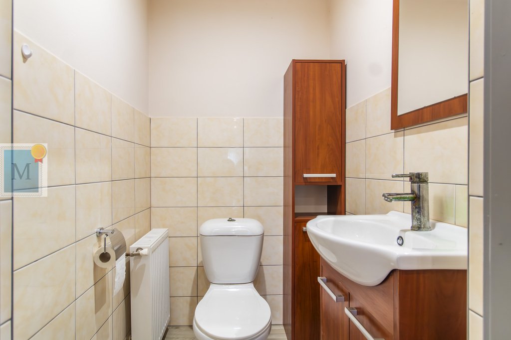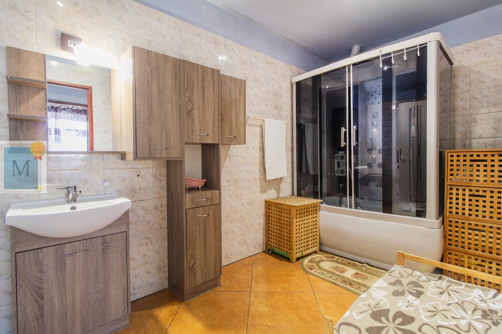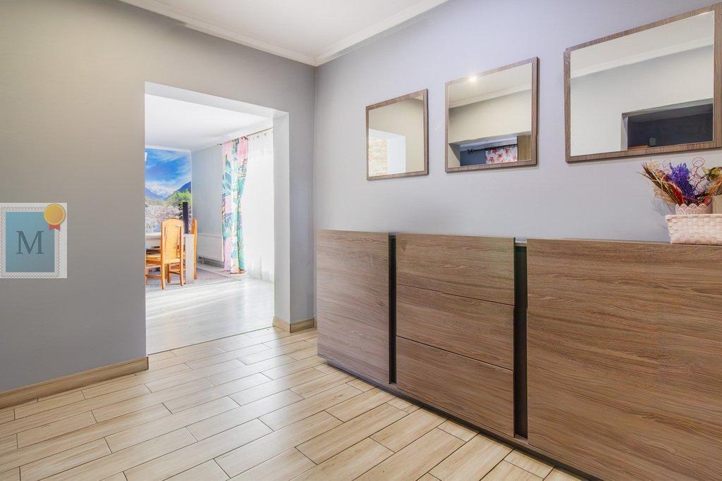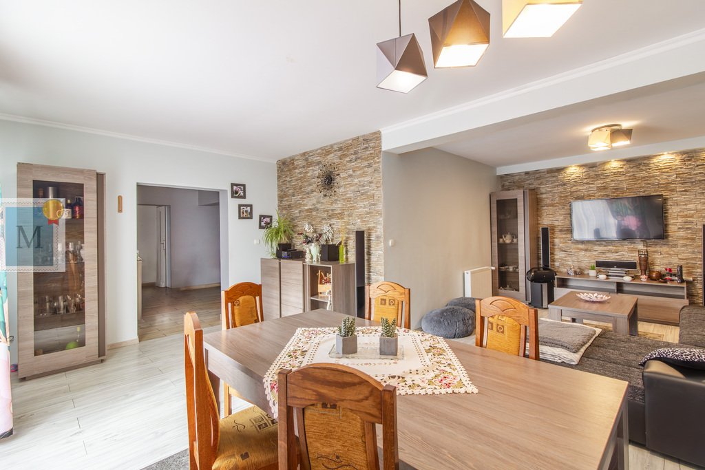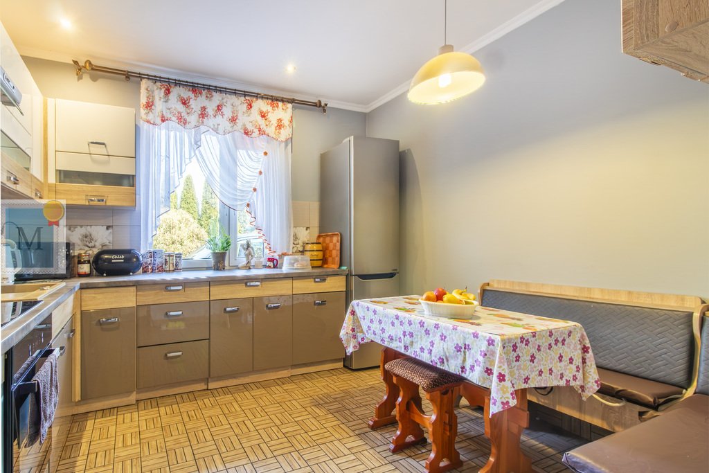 Na dom składa się z korytarz, kuchnia, duży salon z jadalnią, 3 pokoje, łazienka, osobne WC, kotłownia i spiżarnia.