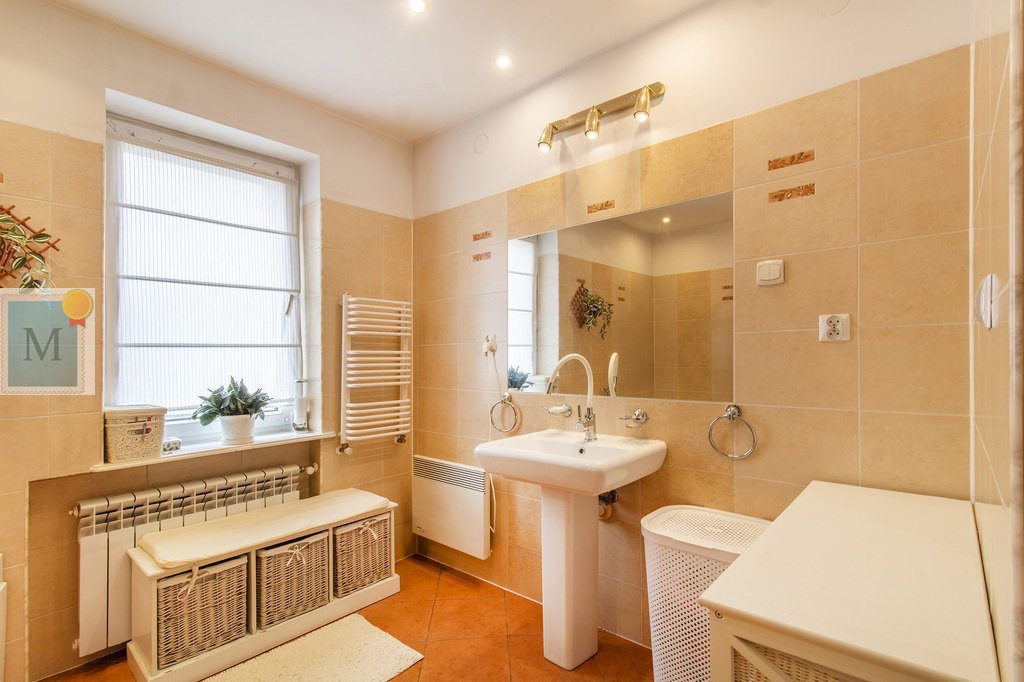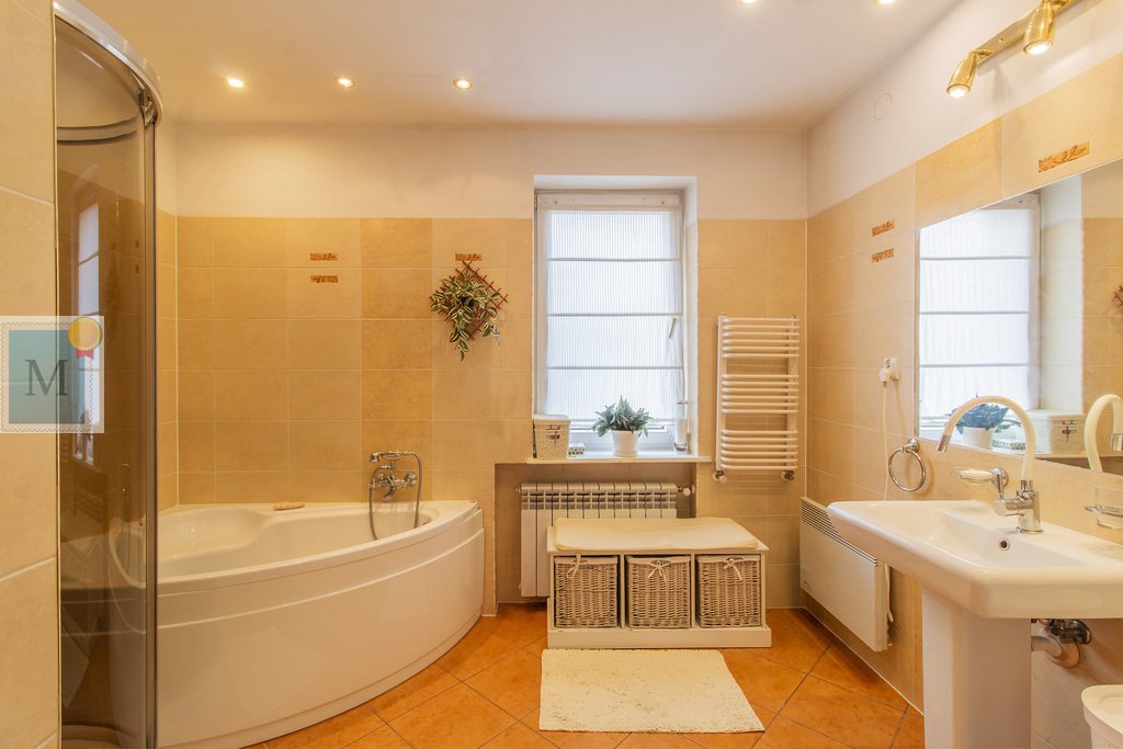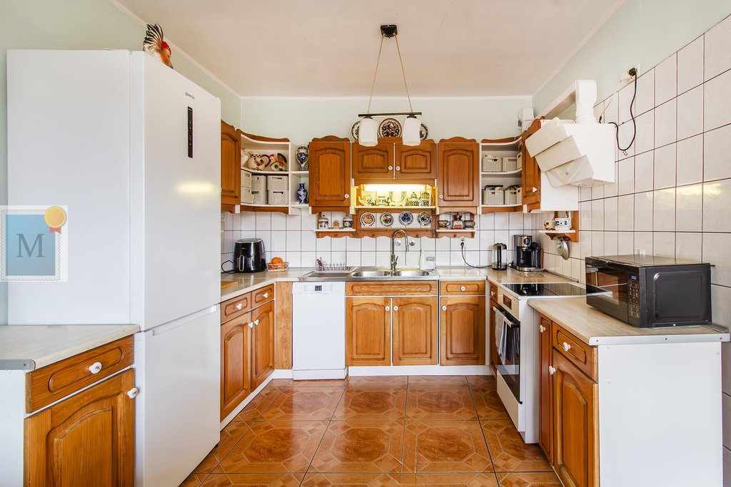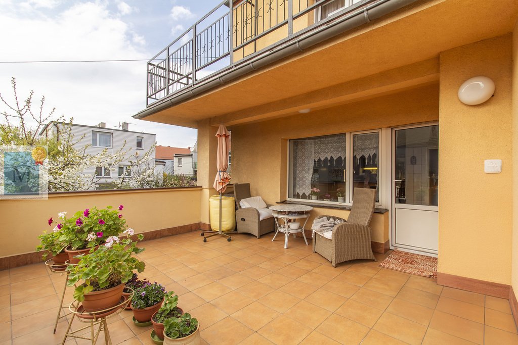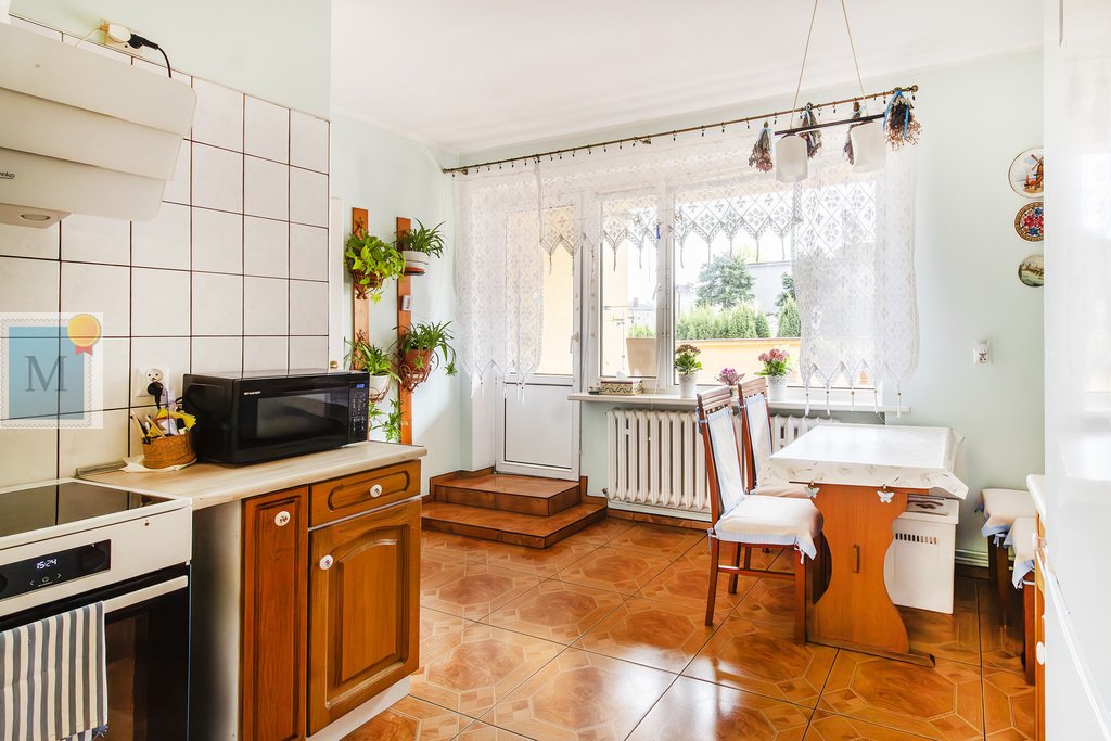Wysoki parter - kuchnia z wyjściem na duży, częściowo zadaszony taras, łazienka z wanną i prysznicem, osobne WC, salon i gabinet.