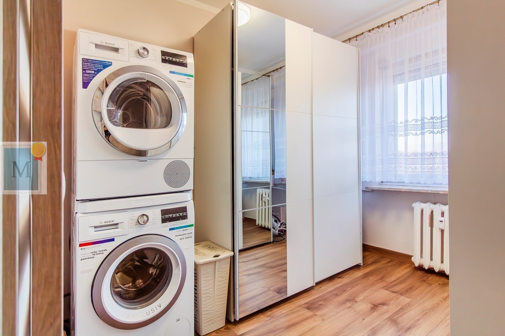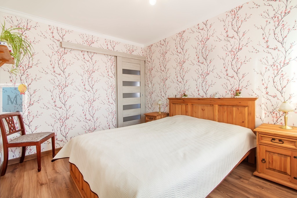 Trzy sypialnie o pow. ok. 12m2 i 10m2, jedna najmniejsza przerobiona na pralnię z garderobą.