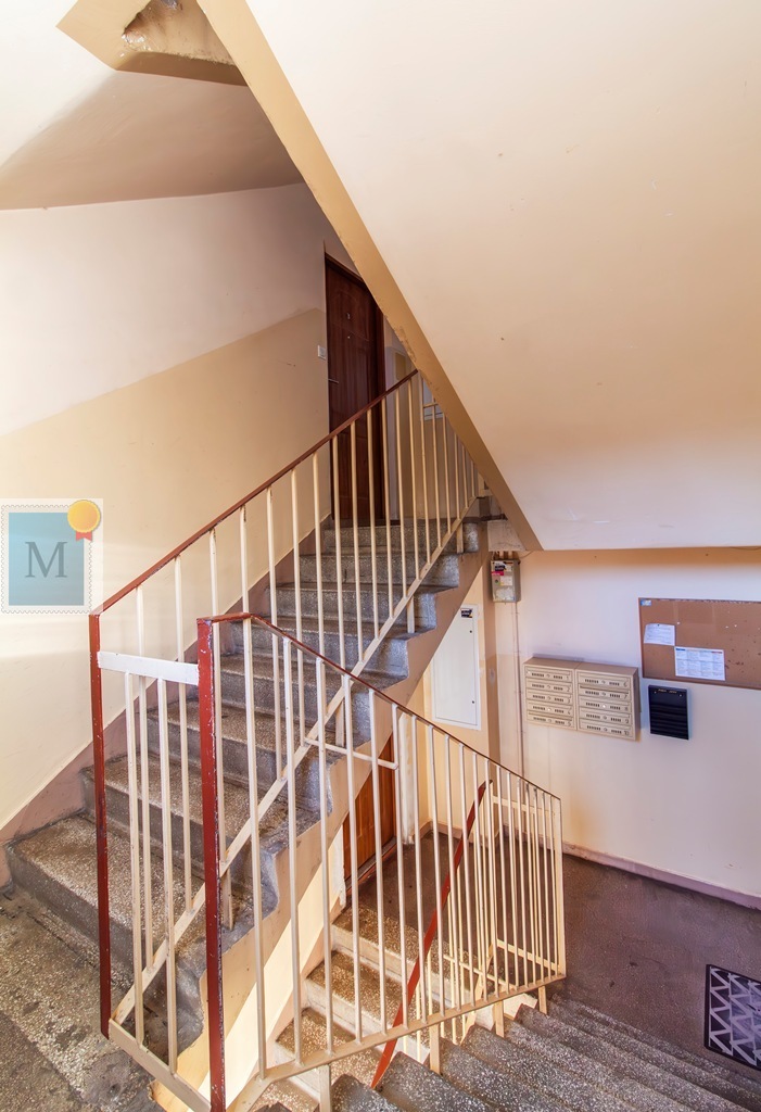 Blok po termomodernizacji, klatka schodowa schludna, sporo miejsc postojowych przy bloku, za blokiem.