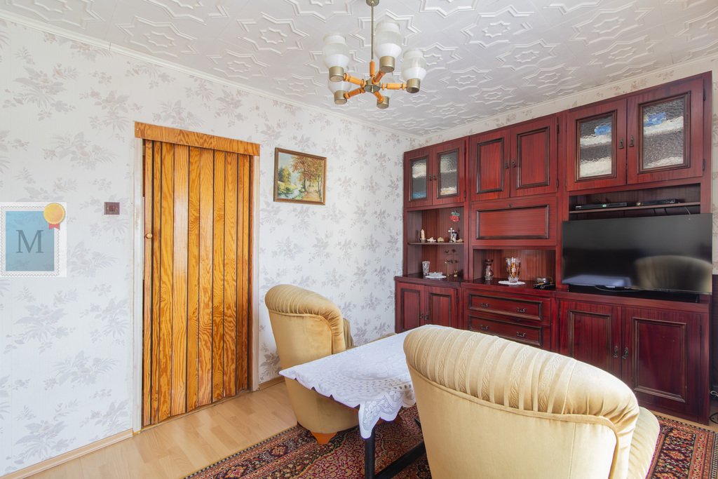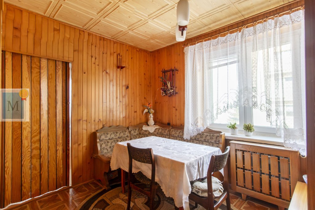 Znajduje się na 2 piętrze, składa się z długiego korytarza na środku, na końcu którego jest jadalnia, z korytarza wejścia do 3 pokoi, kuchni i łazienki. Mieszkanie nadaje się do zamieszkania natomiast urządzane było w latach `90 więc wykończenie i meble pamiętają telewizory z kineskopem.
